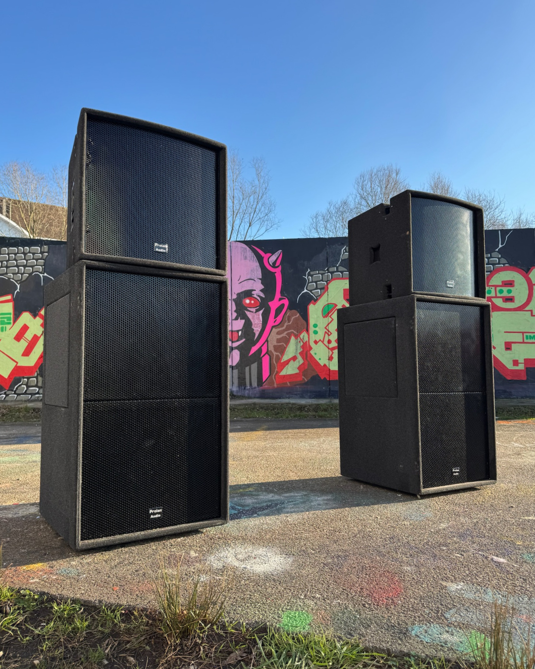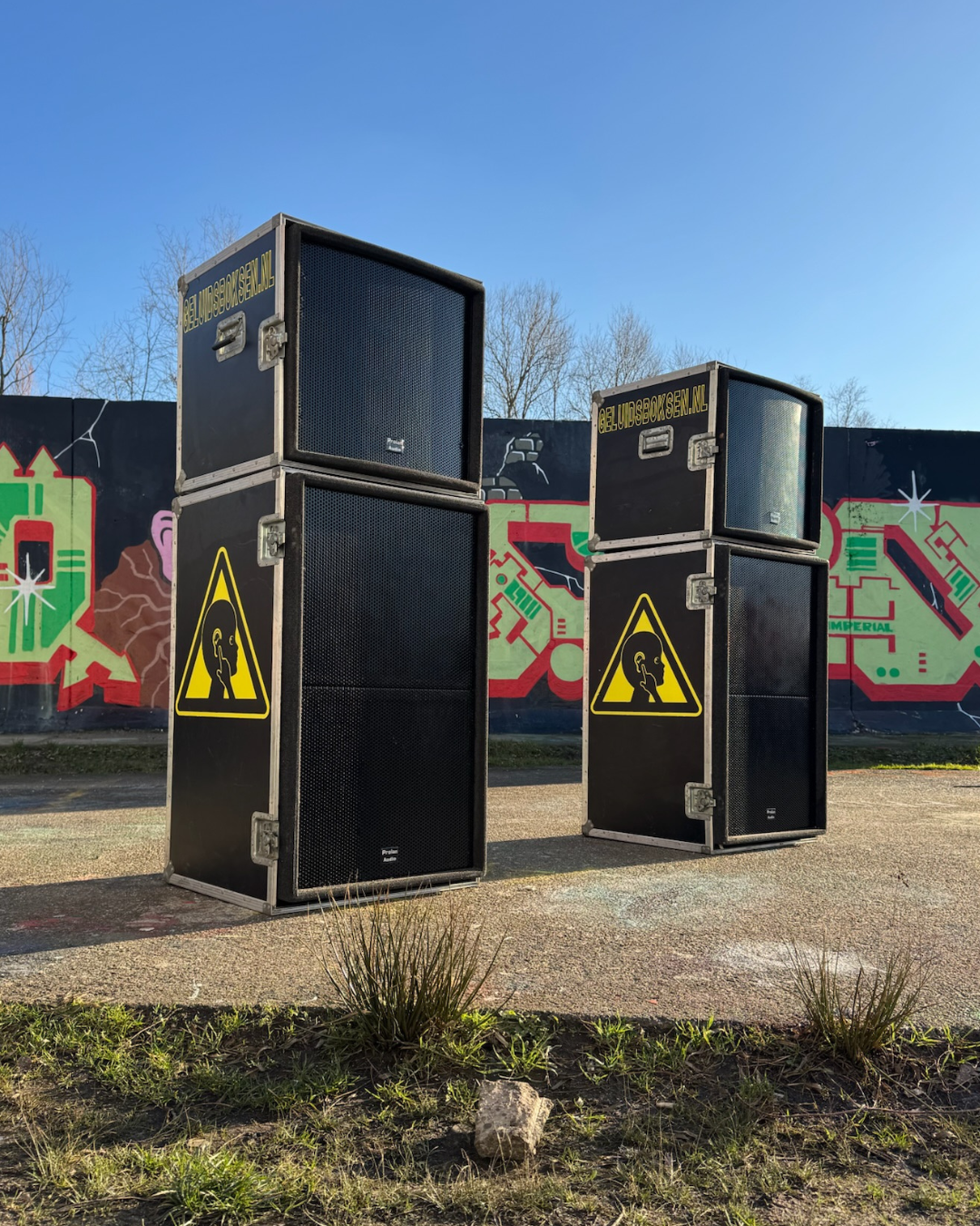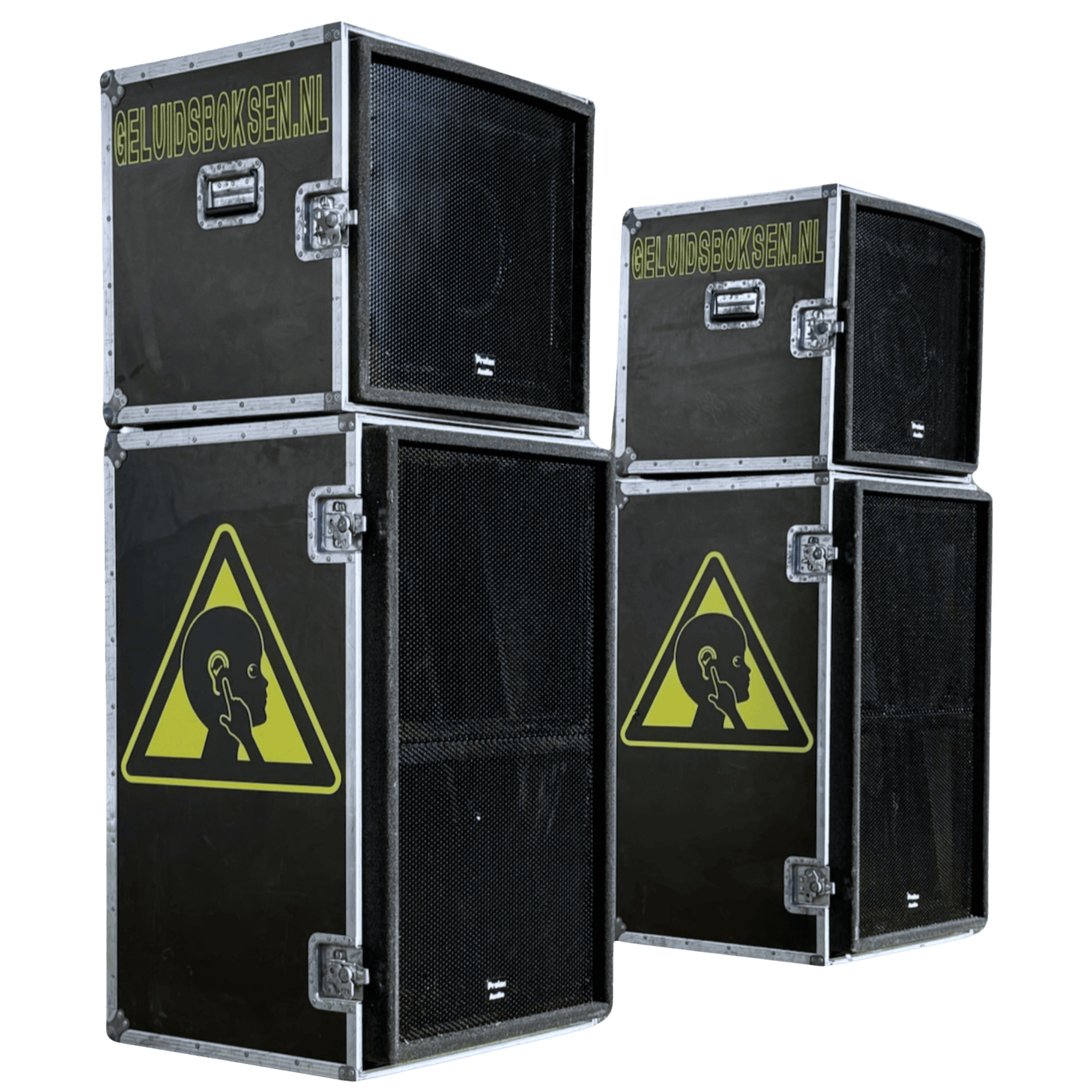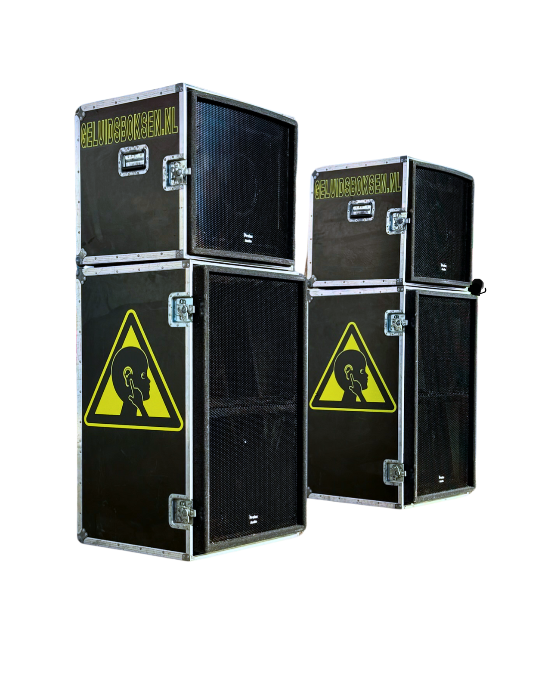 - 2 subwooferkasten met in totaal 4x 18 inch drivers