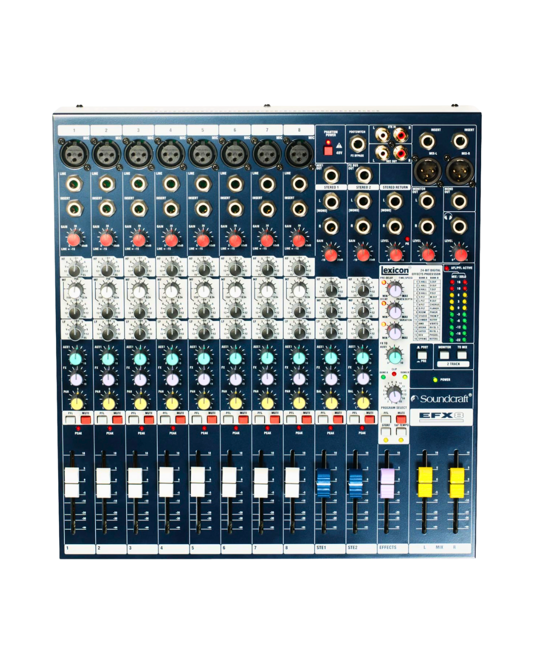 - Soundcraft EFX8 mixer (inbegrepen)